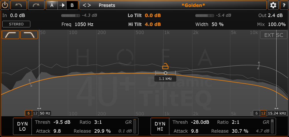 DynamicTiltEQ is a unique plugin that i haven’t heard enough people talking about. First of all, it’s a very capable tilt filter, with the ability to independently control the tilting of the low and high portions, which allows for great fine-tuning of the contour. But beyond that, the frickin’ thing is dynamic. Dynamic Tilt EQ. What a cool concept.