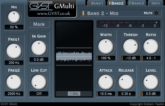 It’s got pretty steep filters like TriComp mentioned above, except that the crossovers aren’t perfect, leading to resonance bumps at the cutoff points when the band levels are close to each other (similar to what’s up with EQ Three). This means that supposedly “subtle” settings will be causing some unwanted frequency contouring. Not acceptable! Naughty plugin. Unless you happen to want that specific behavior, i guess?