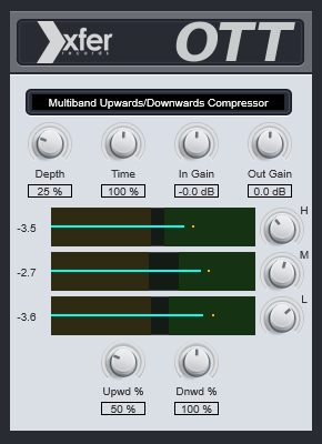 TheKing is going for that “OTT” vibe by pairing upward with downward compression, using a single threshold for both on a given band. So you can use just downward compression or upward compression, or you can implement both simultaneously to have them play a sort of “tug-of-war” battle between compressing upwards and downwards.