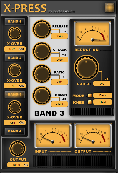 With a very efficient, no-nonsense GUI, X-Press (obtained from beatassist’s free BAFEX Studio Bundle) lays out the functions close at hand for easy tweakage. There’s no bizarre features here, just everything you’d expect.