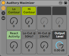 Auditory Miximizer: The PerforModule twist on the infamous sonic maximizer, with tastefully optimized frequency contours and dynamic reactivity. Comes in 3 versions: stereo, L-R, and M-S.