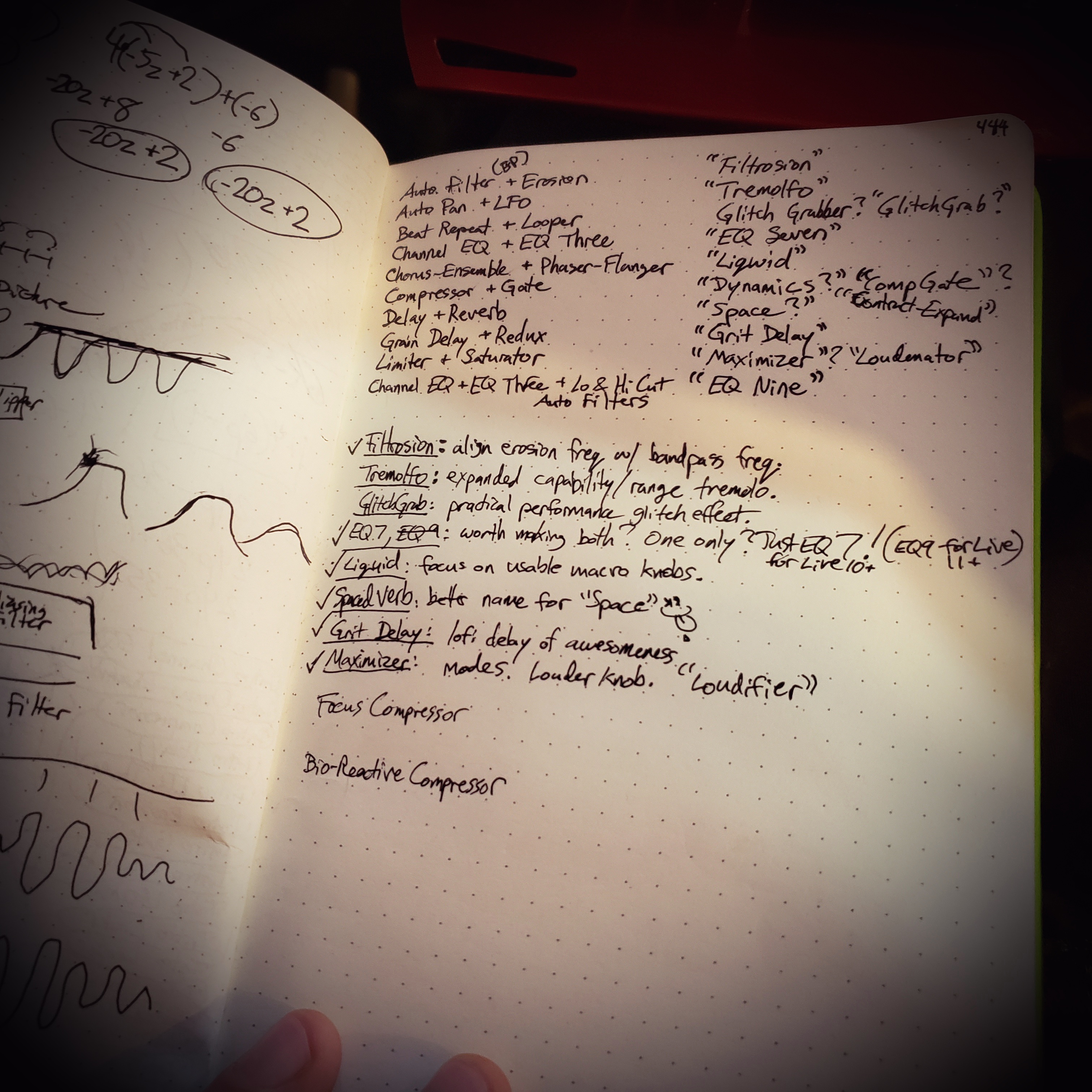 The first step was listing out the effects on paper and pairing them up, with the basic premise of using each effect one time in order to showcase their general capabilities. Here’s what was envisioned: