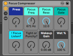 It’s a compressor which allows you to squish down based on very specific frequency content of the material it’s listening to. You can already set a compressor to be frequency-selective using its built-in sidechain EQ, so… what’s the point of this? It’s even more frequency-reactive than ever before. Plus the sidechain focus can be gated, for choosy intentional character response. Want a compressor to ONLY compress when a certain timbre strikes? It’s now more doable than ever. It’s not quite the same as a dynamic EQ or multiband compressor, because it ducks the whole signal whenever it’s triggered. It’s unique, and potentially very helpful. Setup is a breeze, with instant auditioning of the focus frequency and gating isolation behavior. Switch Focus Listen on to isolate and listen to the trigger signal. Adjust the Focus Freq, Reso, and Gate macros to isolate exactly what you want the compressor to be reacting to. Bold Reso values are recommended for a more blatant effect. After honing in on the desired offending frequency, turn Focus Listen back off and adjust Press to increase the amount of potential compression. Select between a Tight or Punchy mode — Tight will curtail peaks more abruptly, for a more controlled sound (optimal for the purpose of controlling wayward level); Punchy will allow transients to breathe and restore release in a less linear manner, for a generally louder, more aggressive sound (possibly more well-suited for enhancing groove & vibe). You will probably want to adjust Press after switching between modes, because they hit differently.