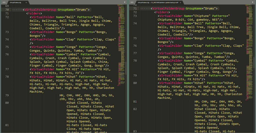 In addition, you definitely, absolutely will want to save a backup copy of your own custom-crafted VirtualFolders.cfg in a safe place, because every time Ableton updates Live, it will get overwritten and you’ll need to replace it (just like with Themes aka Skins). Maintaining a backup of your custom configuration is essential in order to continue using it in the future, so do not forget to save a copy of it after you complete it.